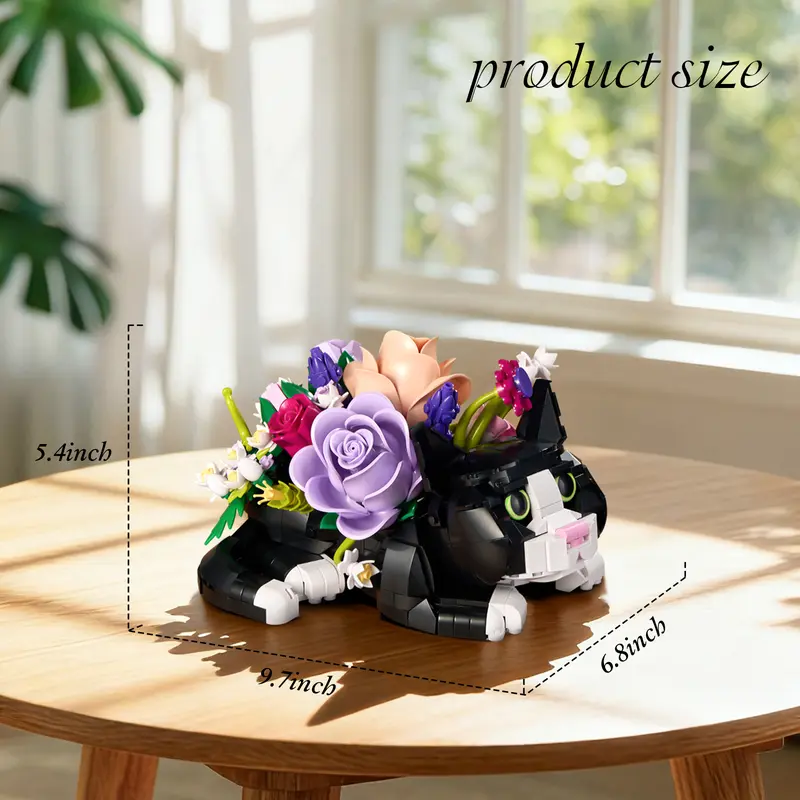 Featuring lifelike flower elements and an adorable tuxedo cat design, this Creative Cat Design Flower Bouquet Block Set for Decor offers both a fun building experience and a display-worthy result. Whether you are a pet enthusiast, hobbyist, or someone searching for a gift, this floral brick building toy brings personality and creativity into any space.