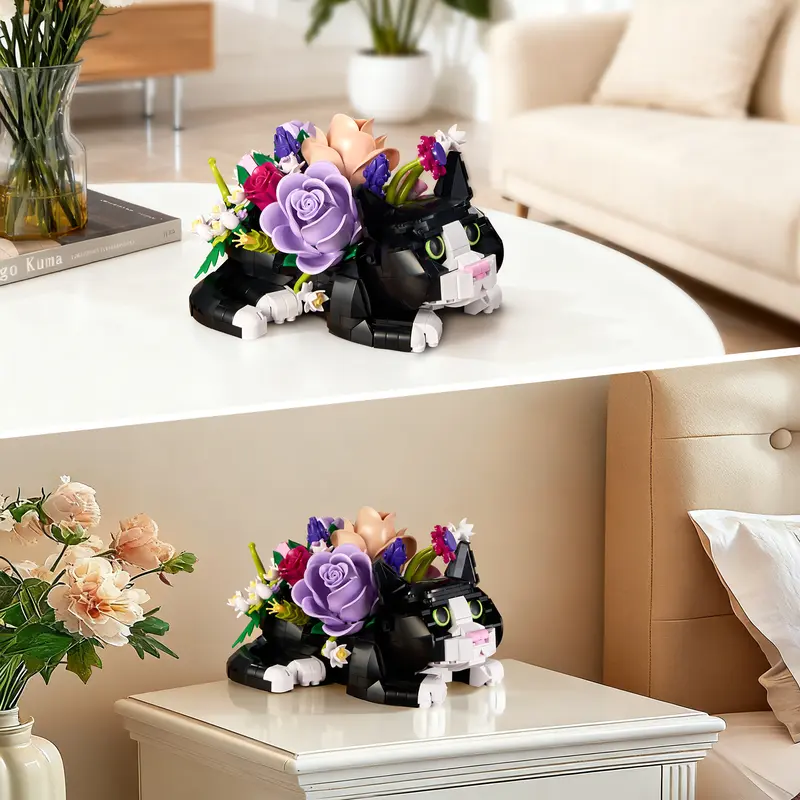Why Choose This Creative Cat Design Flower Bouquet Block Set For Decor