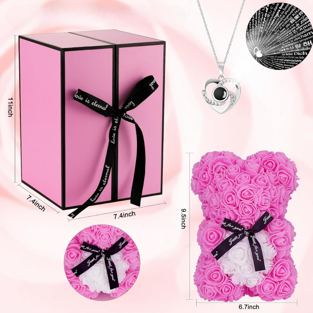 The gift box teddy bear is an excellent choice for various celebrations. Whether as a birthday surprise, an anniversary keepsake, or a thoughtful decorative piece, this floral bear offers a lasting and elegant display. With its intricate design and durable artificial roses, it remains a cherished keepsake for years to come.